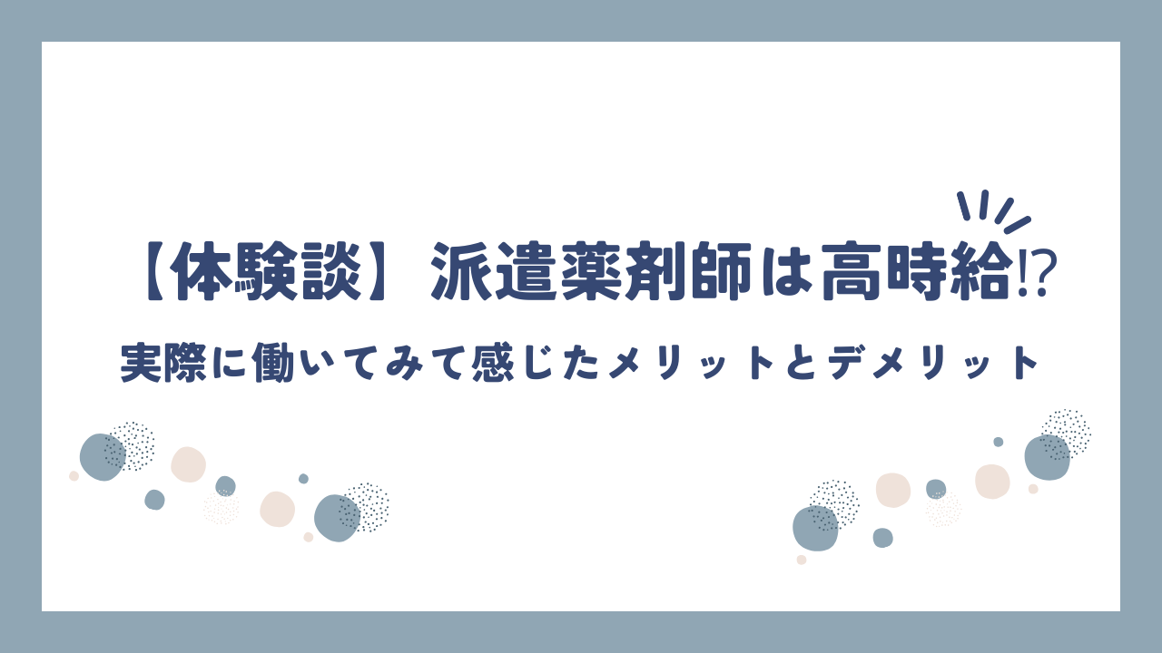 【体験談】派遣薬剤師は高時給⁉実際に働いてみて感じたメリットとデメリット